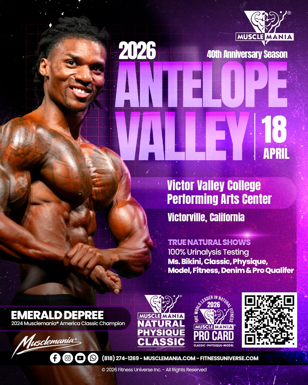 Musclemania ® is the world’s premier natural bodybuilding organization, hosting competitions in physique, fitness, sports model, transformation, and lifestyle.